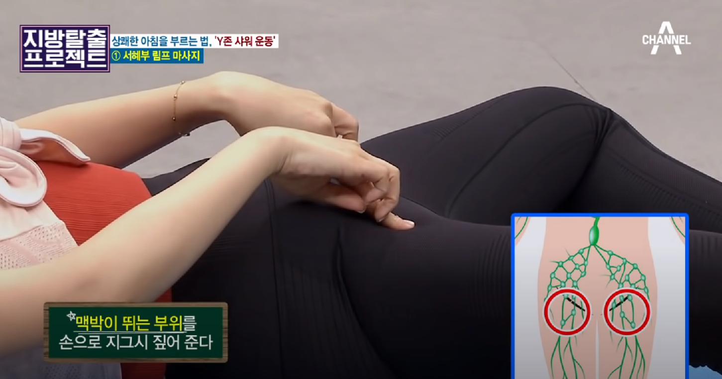 L자 모양으로 살살 쓰다듬듯 마사지.