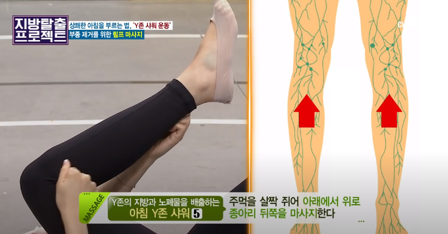 5. 주먹을 쥐고 종아리 뒷쪽을